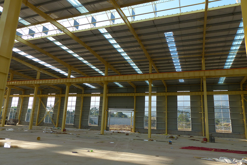 2016年12月23日,一號(hào)廠房屋頂基本搭建完畢,開始安裝吊機(jī)