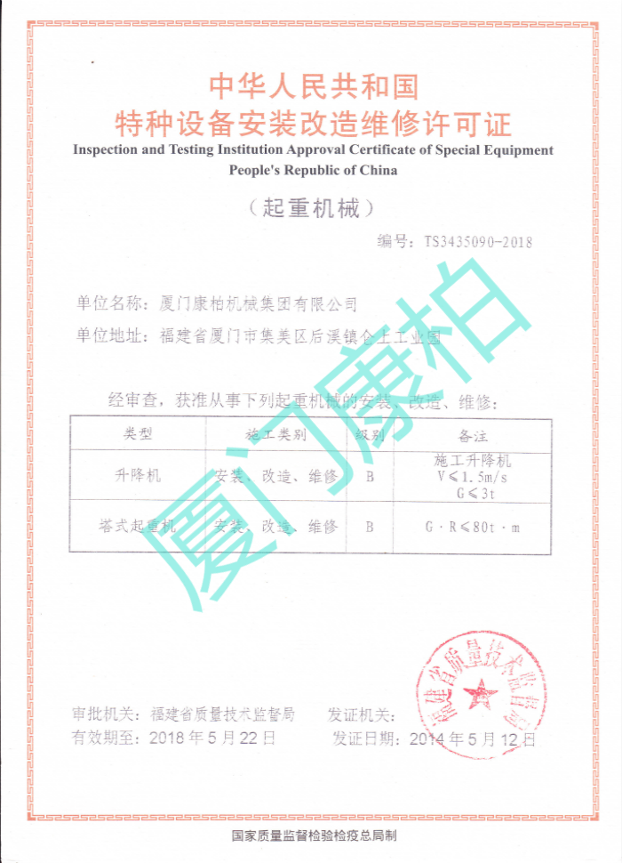 特種設(shè)備制造許可證